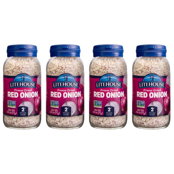 Litehouse Freeze Dried Red Onion - Substitute for Fresh Red Onion, Jar Equal to 2 Red Onion Fresh, Organic, Red Onion Seasoning, Non-GMO, Gluten-Free - 0.60 Ounce 4-Pack