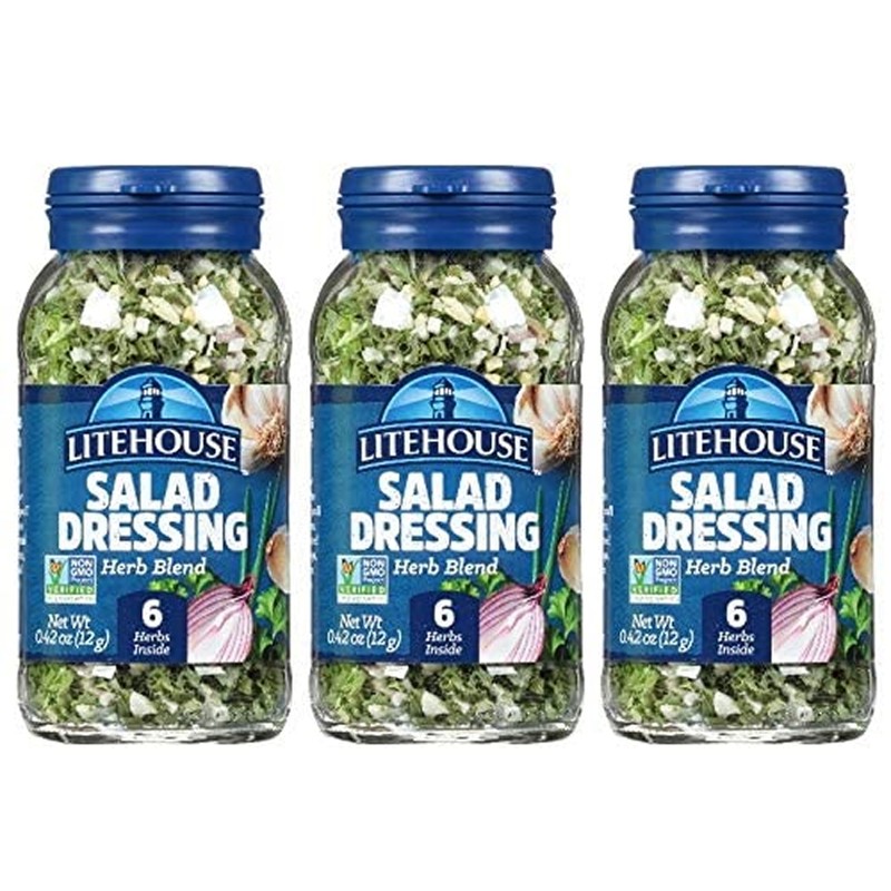 Litehouse Freeze Dried Salad Dressing Herb Blend is a popular mix of chives, garlic, dill, parsley, shallots and red onion that is perfect for the chef-in- you making their own salad dressing. A versatile product that is delicious in dressing, soups, or any of your favorite dishes. When cooking with our herbs, we recommend substituting one tablespoon of freeze-dried herb for one tablespoon fresh. All measurements are approximate.