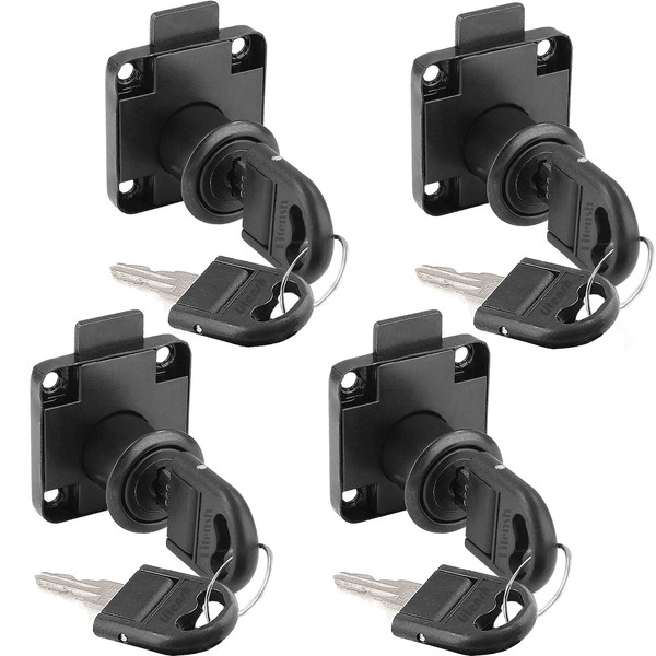 Litensh Cam Lock with Key Alike, Security Cabinet Lock Cupboard Lock Drawer Lock for Furniture Cabinet Mailbox Drawer Household Office (Black - 4 Pack)