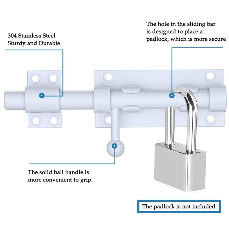 - EXTRA PROTECTION - The hole in the sliding bar is designed to place a padlock, can be locked which is more secure. Keep those pesty intruders away with this high quality door latch.