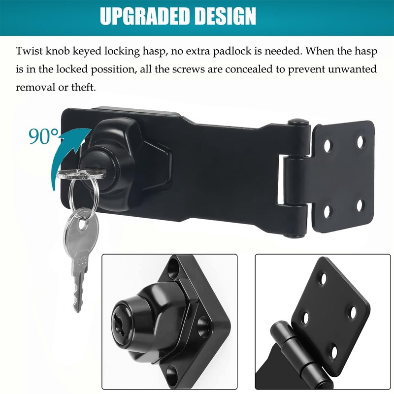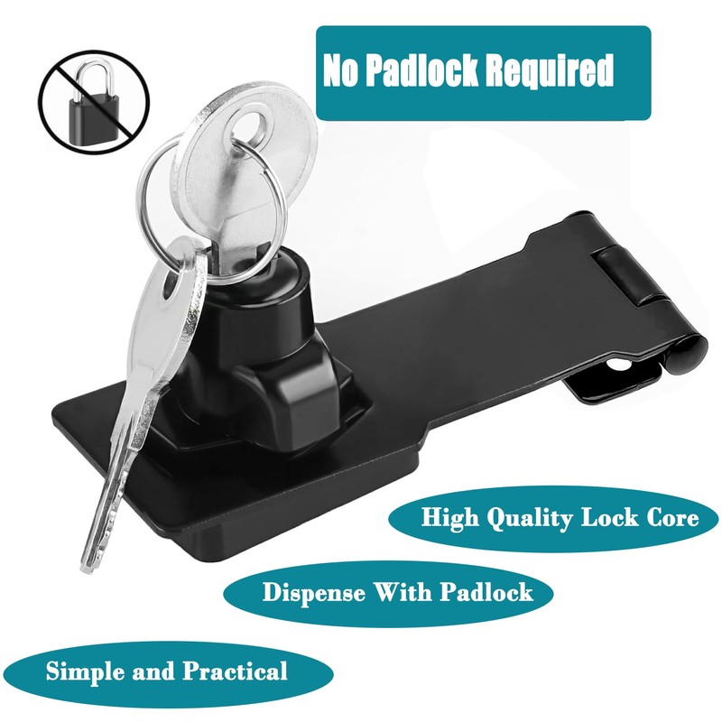 - Left or Right Side can be Installed: The door lock hasp with key can be installed on the left or right side to meet your different needs. Suitable for indoor and outdoor use.