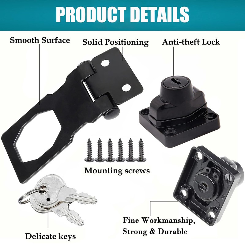 - Safety Keyed Hasp Lock: The drawer lock is made of zinc alloy material, durable, corrosion-resistant, smooth surface, not easy to scratch your hands. In addition, the buckle connection shaft adopts a bold design, which is not easy to break and has a long service life. It is perfect for keeping your items safe.