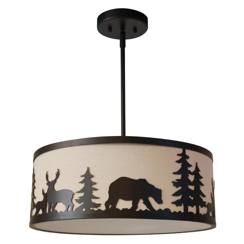 Litex Industries: 1-Light Mini Ceiling Pendant in Bronze Finish with Moose Off White Fabric Shade