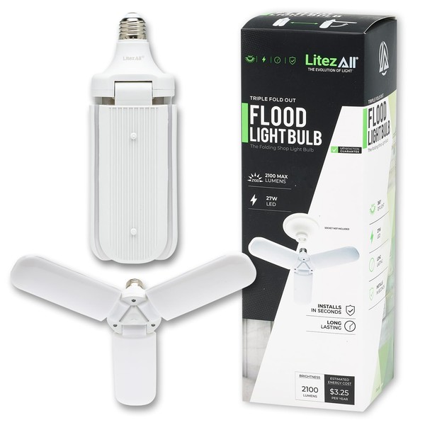 LitezAll Folding LED Work Light with 3 Adjustable Panels, A/C Powered for Garage, Shop, Basement, or Indoor Use, Ultra Bright Multi-Angle with Compact Foldable Design