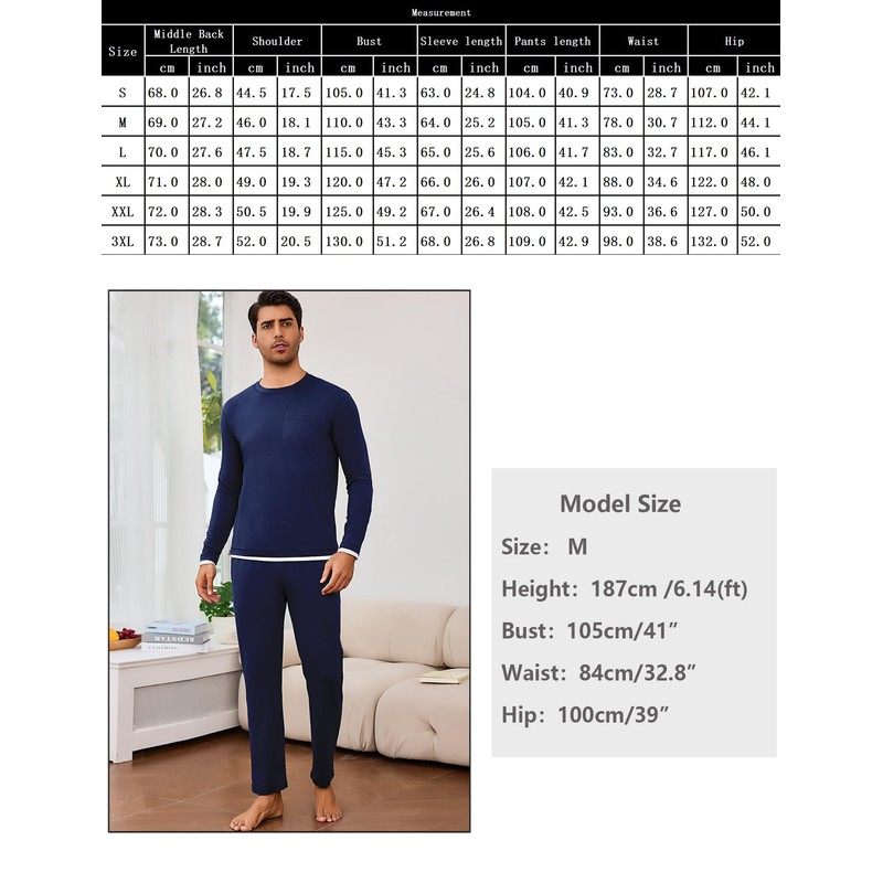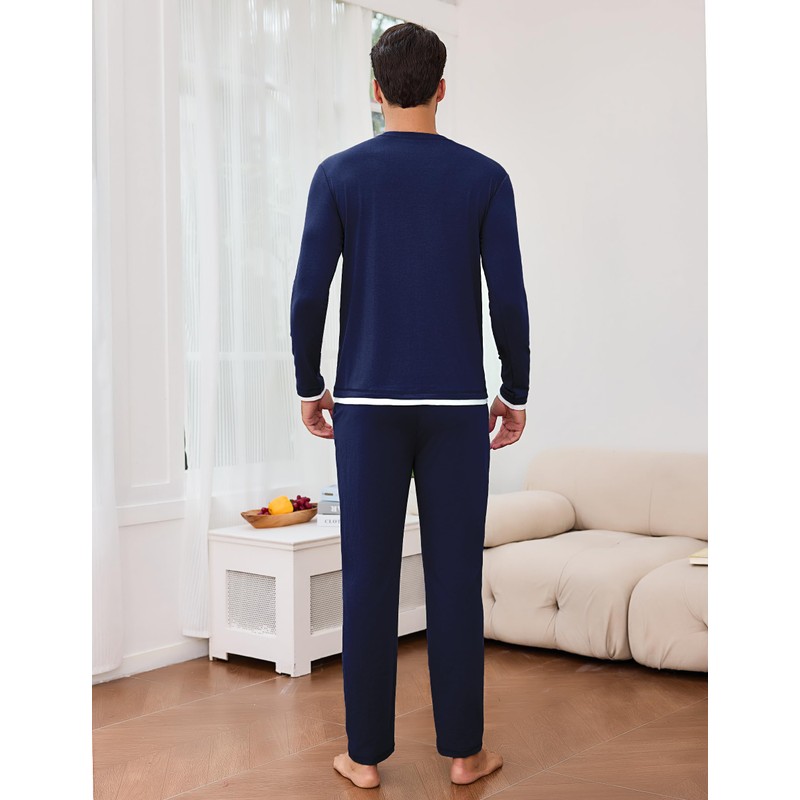 - 【Unique Design】This long men's pajama set features a solid color long-sleeve shirt and pants. The round-neck top is simple yet stylish, with charming details that make it both eye-catching and comfortable to wear