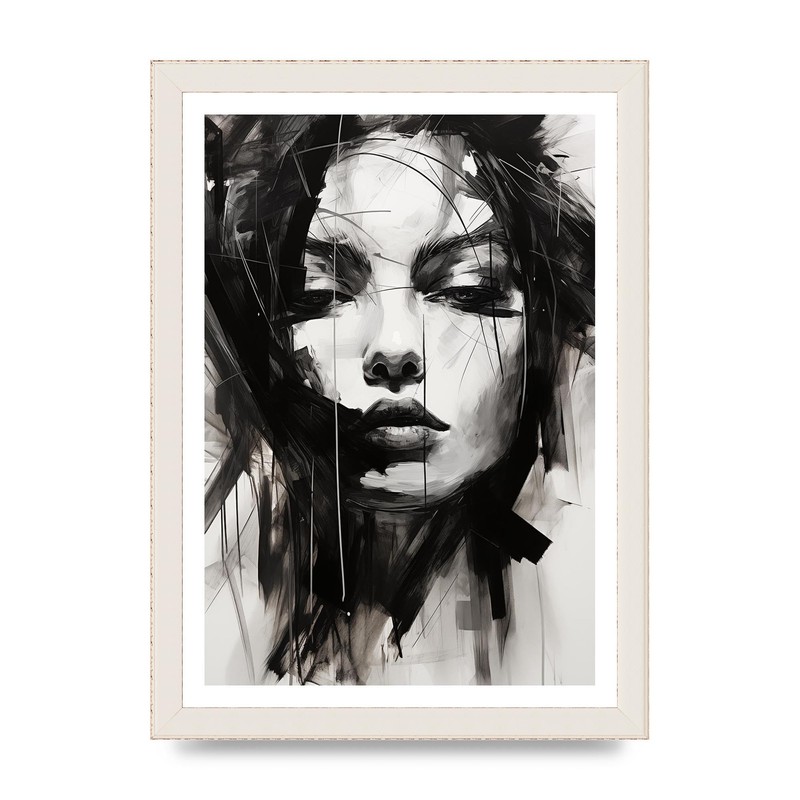 Lithobee - Dramatic Black and White Artwork with Bold Strokes Home Wall Art Prints - A4 White Grain Frame
