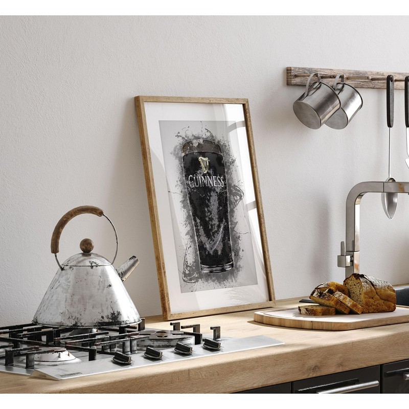 Lithobee - Guinness Pint Splatter - Printed Wall Art Design in Sizes A2, A3 & A4 Framed in a Stylish Quality Coloured Frame or Unframed (A3 White Distressed Frame)