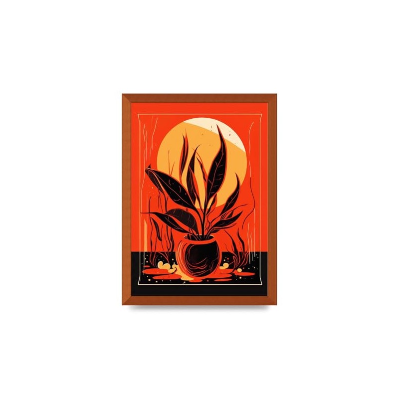 Lithobee - Snake Plant on Vibrant Orange Home Wall Art Prints - A3 Bronze Abraded Frame