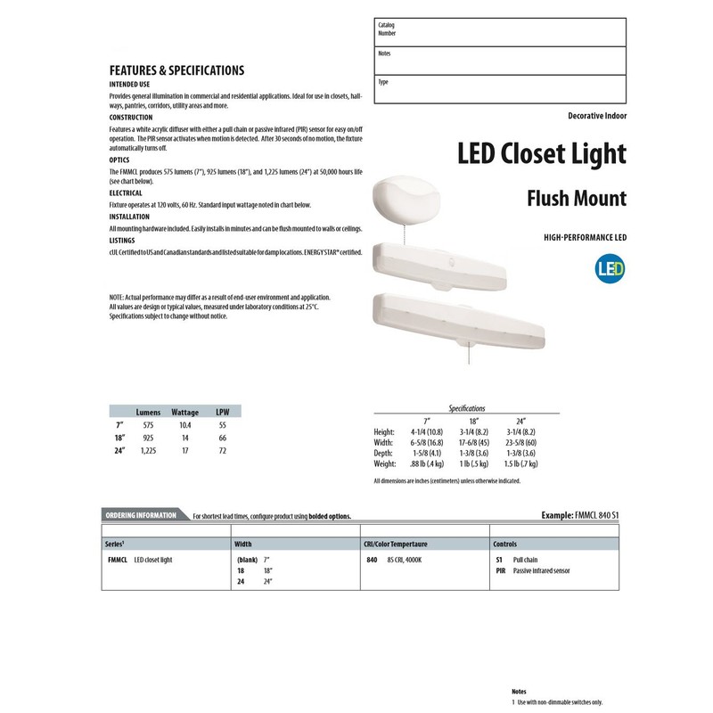 Lithonia Lighting FMMCL 24 840 PIR M4 Adjustable 24-Inch LED Flush Mount Closet Light with Motion Sensor, 1225 Lumens, 120 Volts, 17 Watts, Damp Listed, White