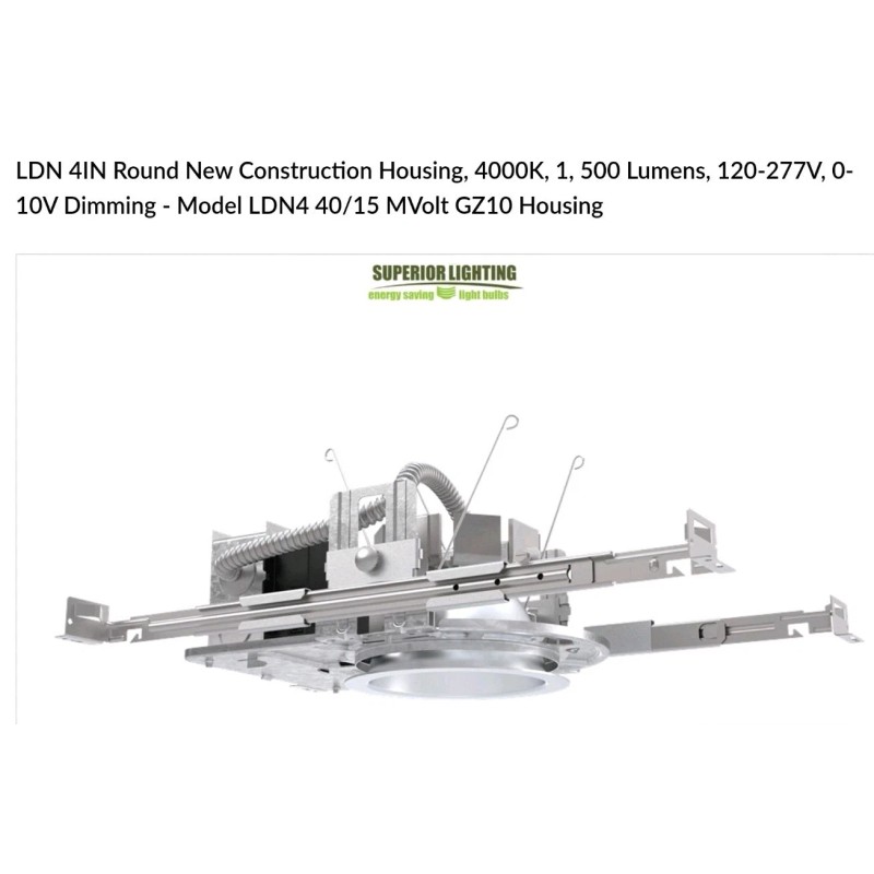 Downlight > Lithonia LDN4 4 inch Round Housings >Lithonia LDN4 40/15 MVOLT GZ1 HSG 4" Open Non-IC New Construction Downlight, 4000K, 1500 Lumens, 120-277V, Dims to 1%