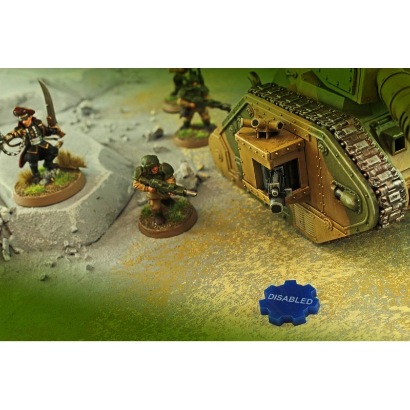 LITKO Disabled Command Token Set | Gaming Aid Pieces | Compatible with Flames of War, Bolt Action, Axis & Allies | WH40K | Napoleonic | Ancients | 10 Pack (Blue)
