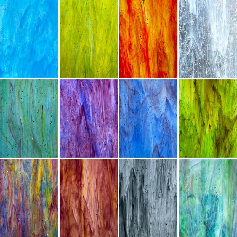 - Value Pack: A total of 12 Veil Texture translucent stained glass sheets in assorted colors.