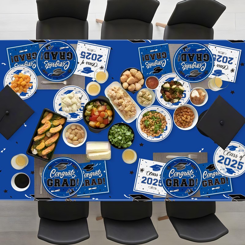 - 【2025 Graduation Themed Party Design】 - Each white and blue graduation theme party plate and dinner napkin in this set features The Graduation Cap, Graduation Diploma, Graduates, Stars, Congrats Grad Class of 2025 Blessing Words, etc. Adding adding an active atmosphere to your grad themed parties. Choose this graduation paper tableware and let your 2025 graduation theme party be full of energy and passion