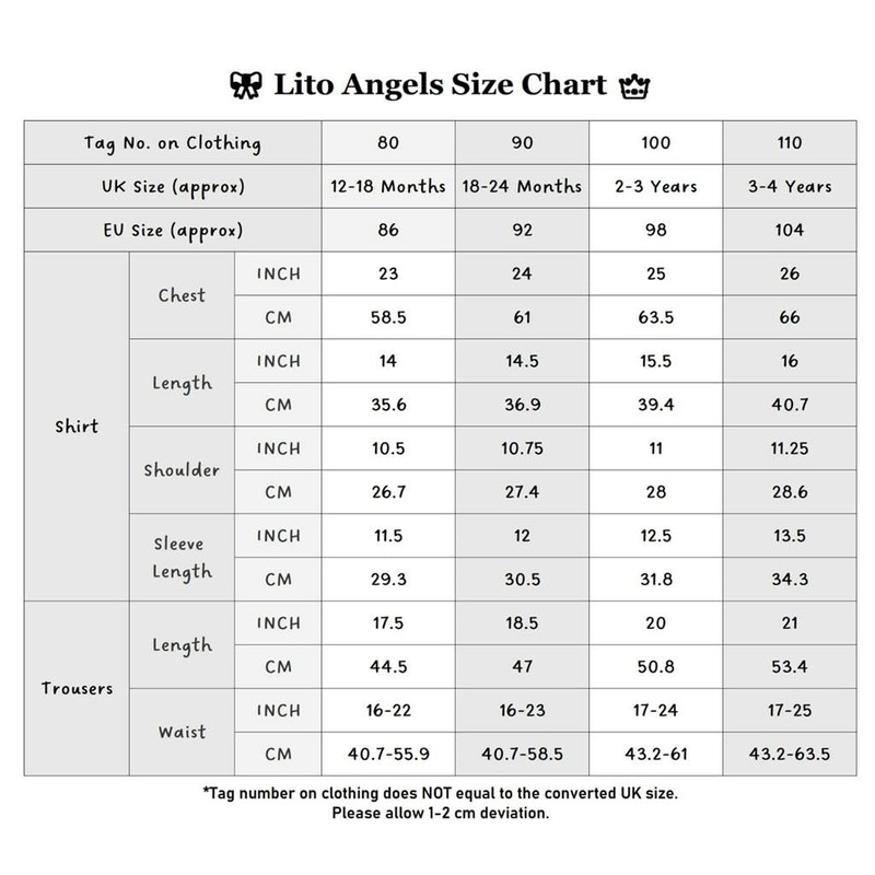 - Size for baby boys and toddler kids, age 12-18 months, 18-24 month, 2-3 and 3-4 years. Please measure your child's current clothing and refer to the size chart to choose a proper size for best fit.