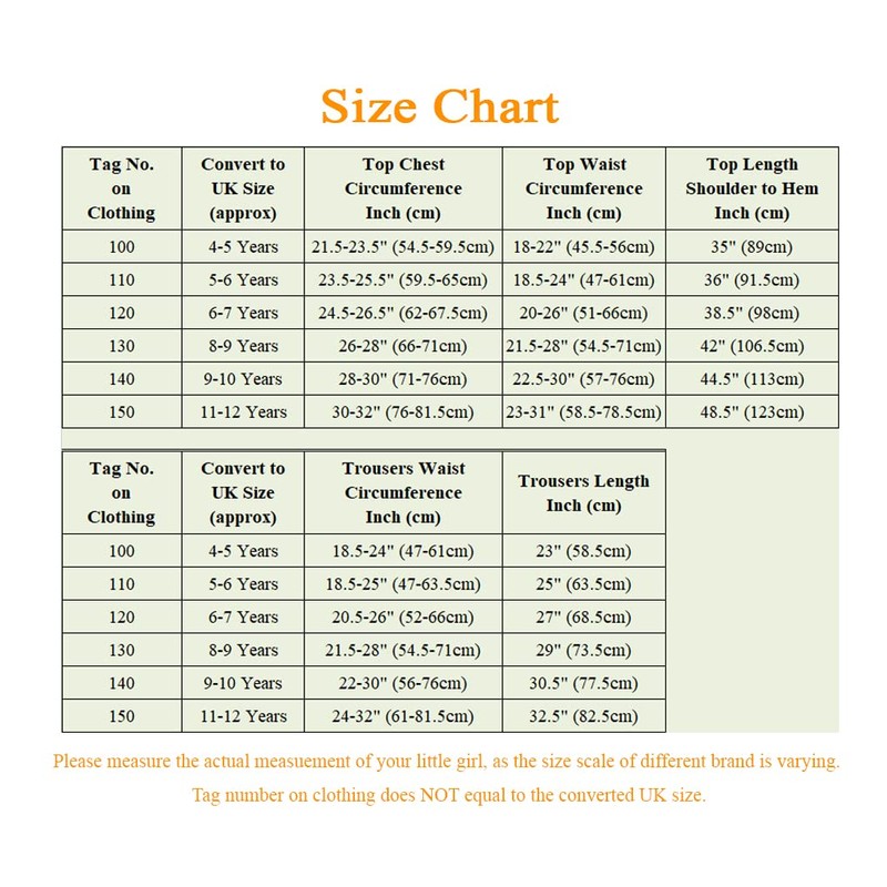 - Größen für kleine Mädchen im Alter von 4–5, 5–6, 6–7, 8–9, 9–10 oder 11–12 Jahren.
