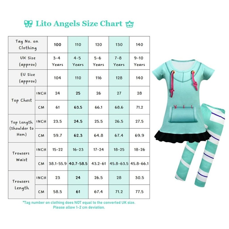 - Size for toddler and kids girls, age 3-4, 4-5, 5-6, 7-8 and 9-10 years. Please measure your child's current clothing and refer to our size chart for more accurate measurements.