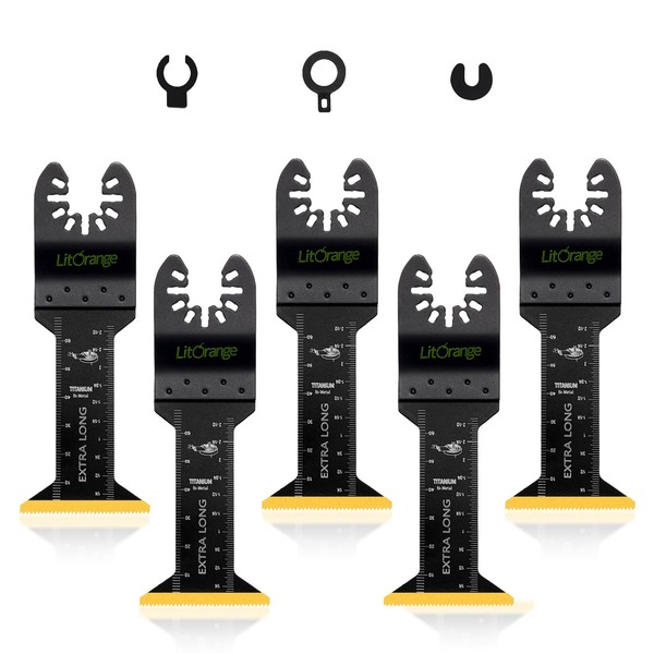 Litorange 5 Pcs Extra-Long Titanium Oscillating Multitool Blades, Universal Quick Release Saw Blades for Cutting Metal Nails Screws Wood and Plastic