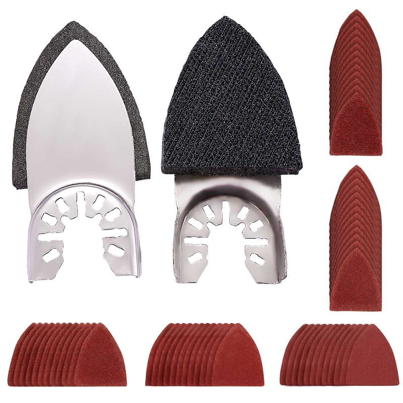 Litorange 62 Pcs Oscillating Multitool Sanding Pad Kit, Fast Fit Sanding Kit Includes 5 Kinds Sandpapers for Surface Polishing Compatible with Bosch, Craftsman, Chicago, Dremel Multiple Tools Etc