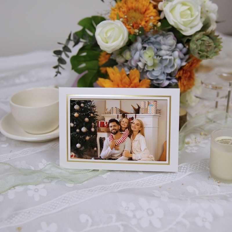 - All Occasion Photo Card Holder: Use our paper picture frames 4x6 with Gold Foil Borderfor birthdays,anniversaries, graduation,Mother's Day, Father's Day,Thanksgiving,Halloween,Chirstmas,and Weddings to give a photo invitation to friends, family, mothers, fathers, and valentines.Many people like to DIY their own favorite cards and envelopes. We all love to make and receive such emotional cards.