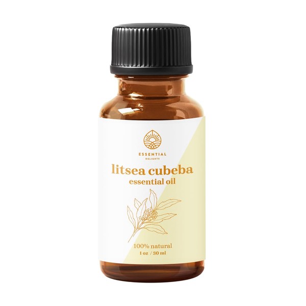 Litsea Cubeba Essential Oil by Essential Delights - Fresh and Citrusy Aroma for Energizing Aromatherapy and DIY Cleaning Products, 1 oz