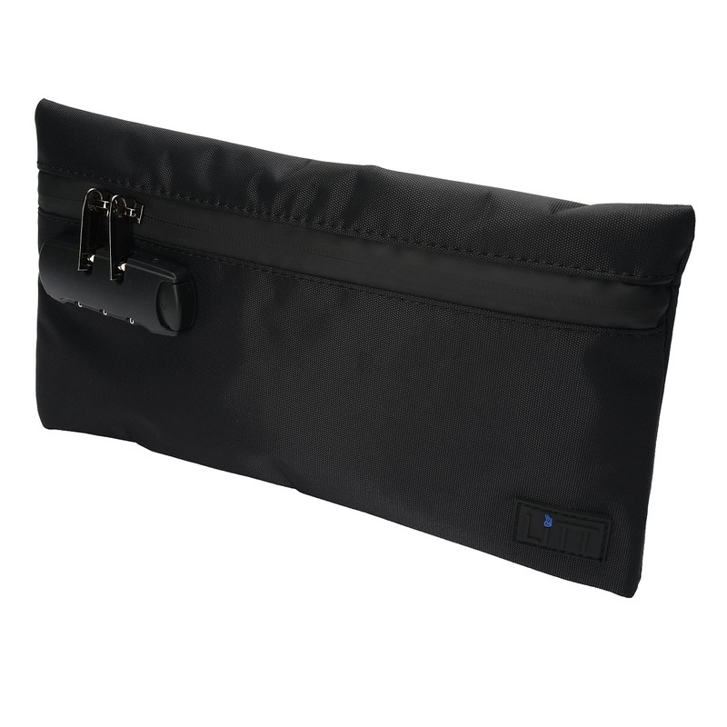 LITT Lockable Smell Proof Stash Bag – Black, Charcoal Lined, Accessories Storage Long Pouch with Combo Digit Lock | Travel Organizer & Lifestyle Accessory