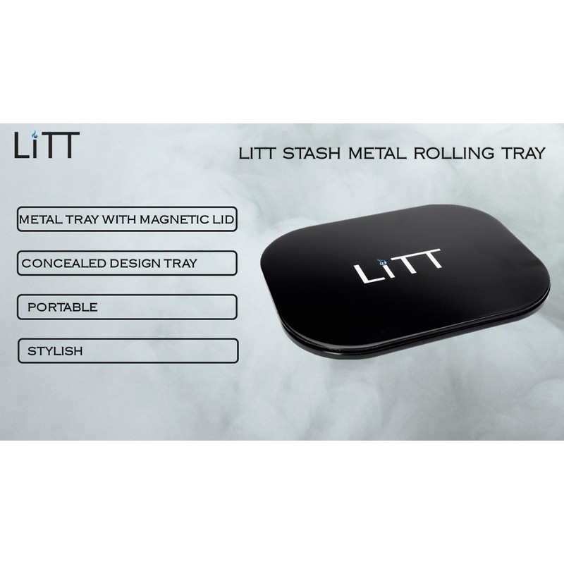 Litt Stash Metal Rolling Tray with Magnetic Rolling Lid- Smart Way to roll, Keep Your Accessories Hidden (Small)