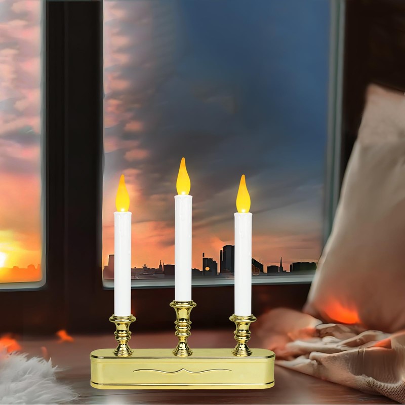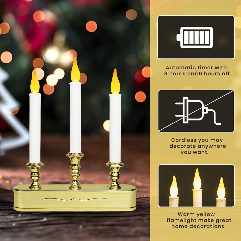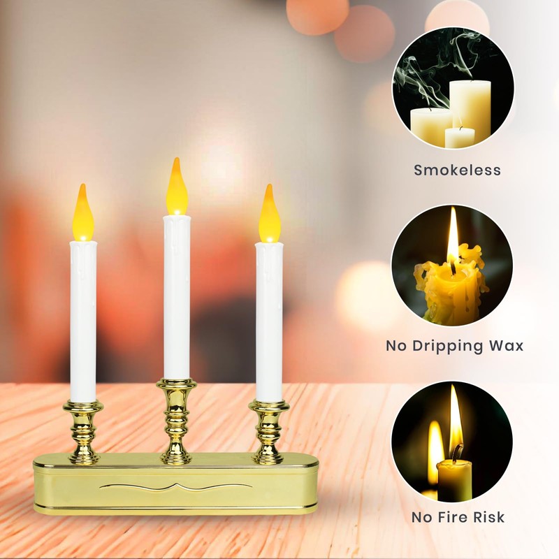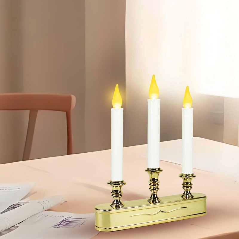 - Elegant Candelabra Design: These three flickering flameless candles are gracefully set within a classic candelabra-style base, crafted from durable plastic. The refined design brings a touch of sophistication and charm, effortlessly blending with any decor style and enhancing the beauty of your space.