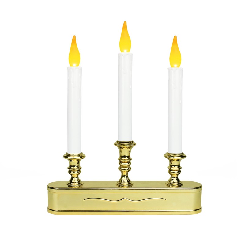 LitTerra Window Candles Battery Operated with Timer 8 Hours on and 16 Hours Off Led Warm White with Flicker Flame (3 Led Gold)