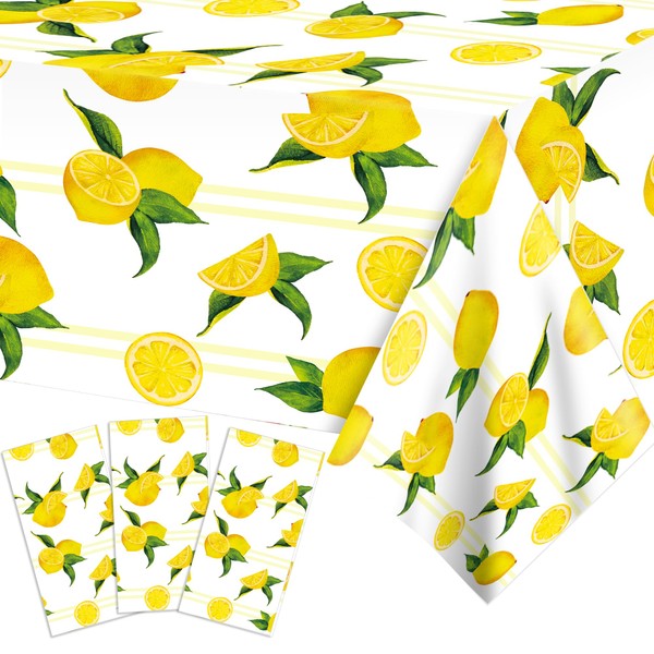 littkeef cliaet 3 Pack Lemon Party Tablecloth Lemon Birthday Party Decorations Lemon Table Cloth Lemon Plastic Table Covers for Summer Lemon Theme Party Decorations,54 x 87 Inch