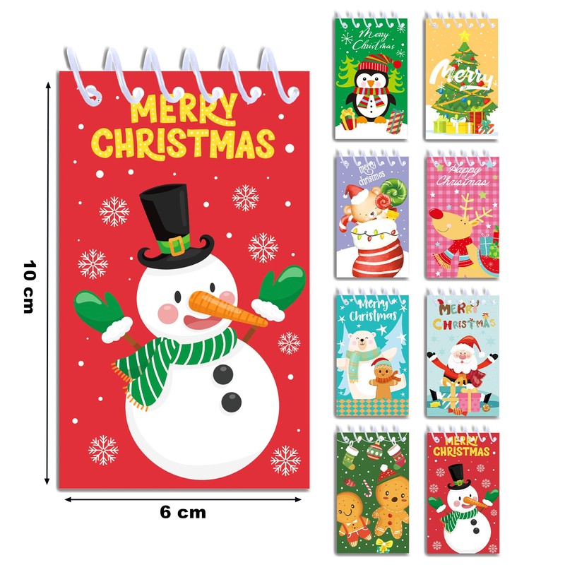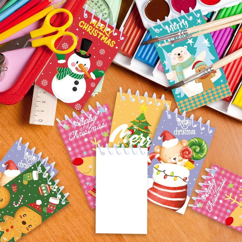 littkeef cliaet 8 Pcs Christmas Day Tall Spiral Memo Pad, 128 Sheets, Christmas Pocket Notebooks, 4x2.4 inches Small Spiral Memo Pads Pocket Notebook for Office School Memo Tactical Steno Pads