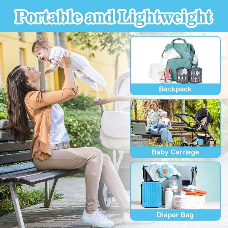Our newborn baby grooming set is just the right size, not too big so as not to take up space or inconvenient to carry, and not too small so as to be convenient to carry when travelling