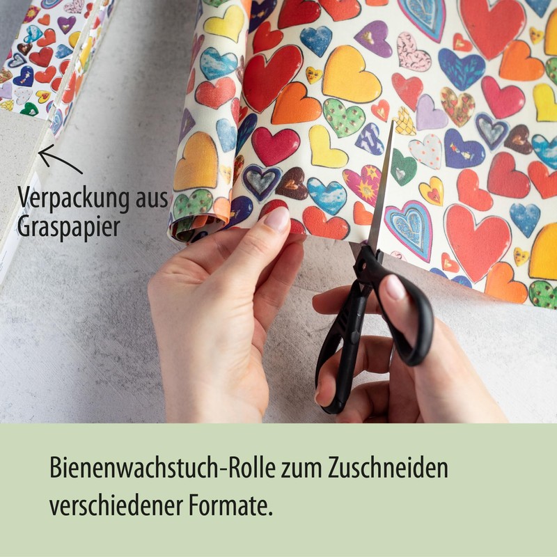 little bee fresh Organic Beeswax Cloths Roll to Cut from Germany - Keeps Food Natural, Beautiful and Plastic-Free Fresh! Handmade from Organic Raw Materials (Hearts)