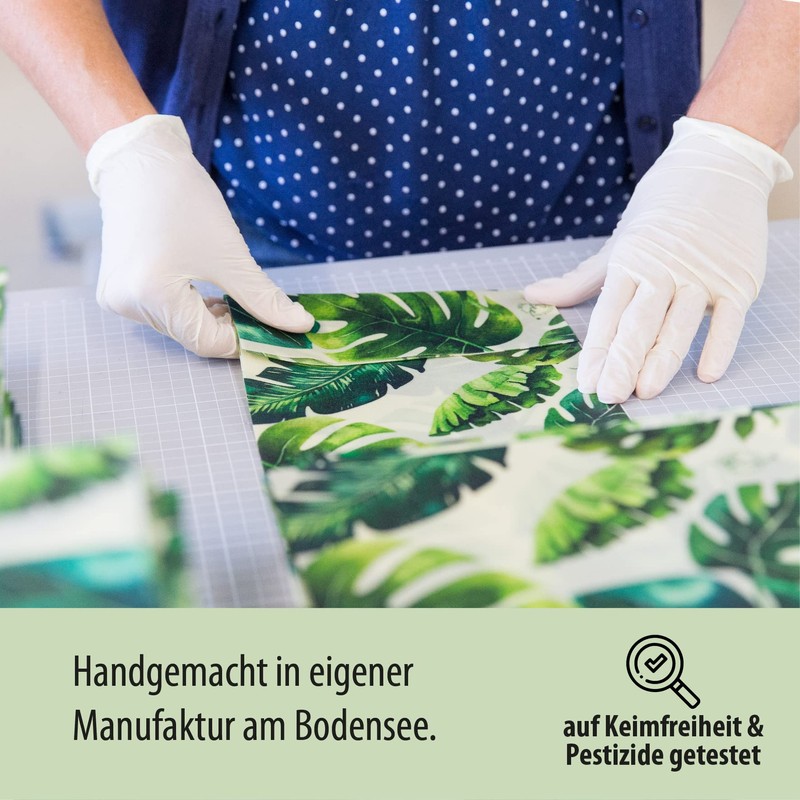 - Organic certified raw materials: for your organic beeswax cloth, we only use organically certified and controlled raw materials from Germany and Austria. So you can pack your food with a clear conscience free of plastic and harmful substances.