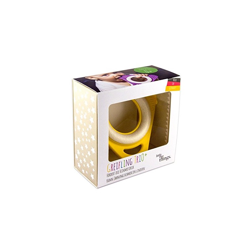little big things Holzgreifling TriO+ mit weichen Fühl- & Kau-Elementen, gelb