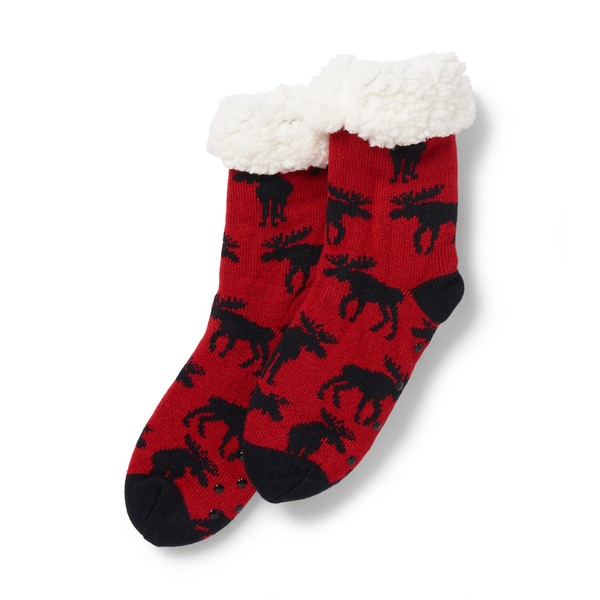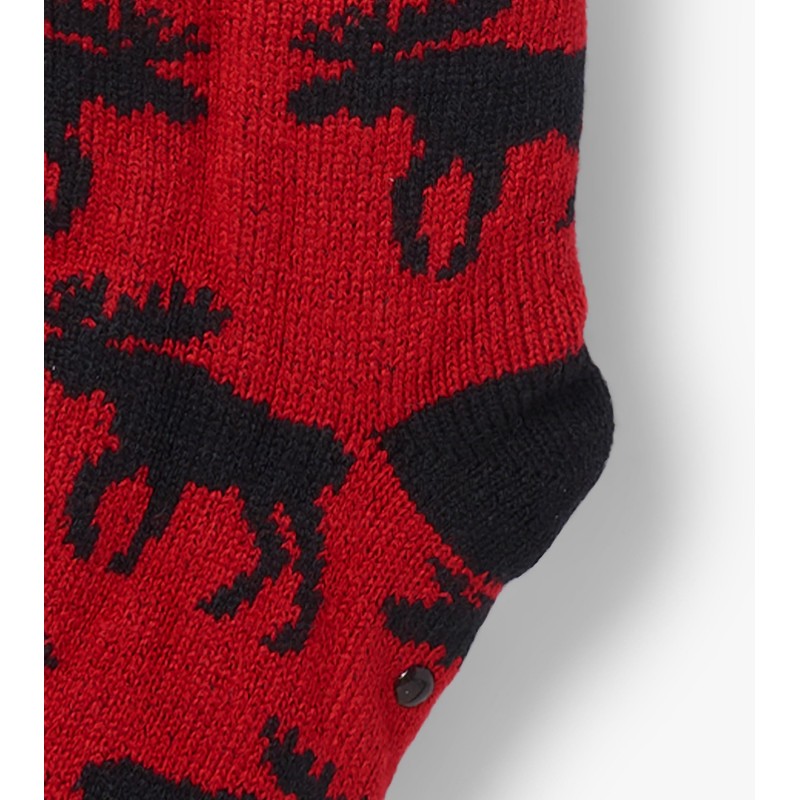 Little Blue House by Hatley Sherpa Lined Cabin Socks, Moose on Red, One Size
