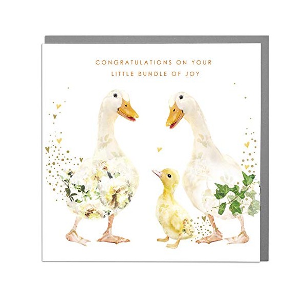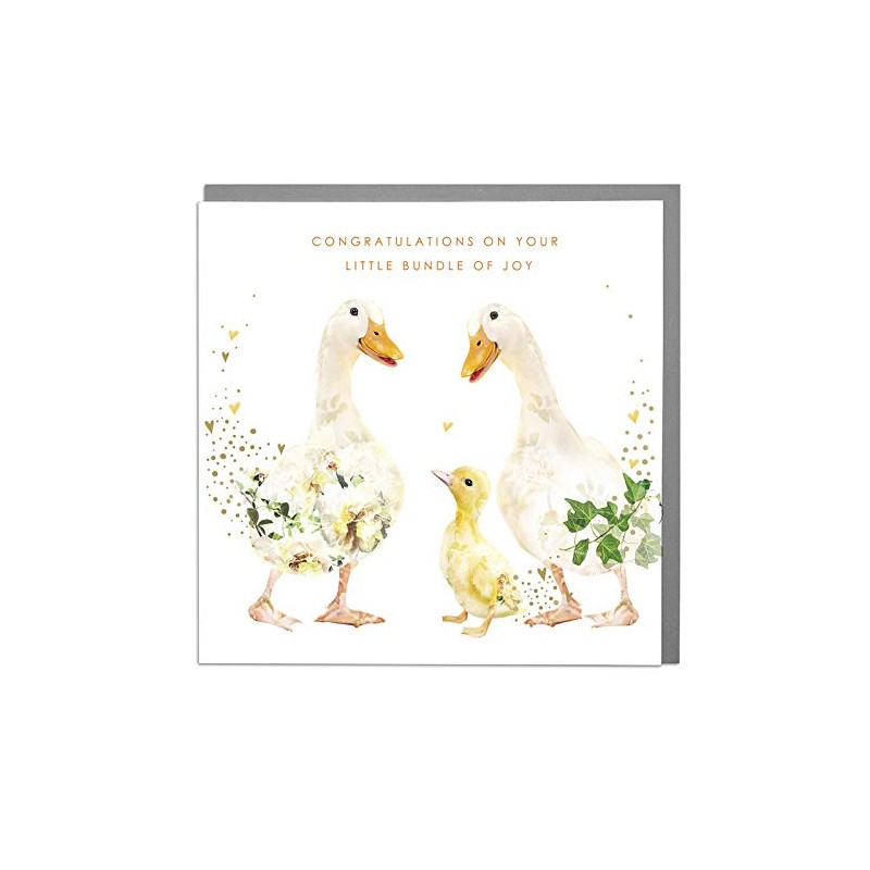 Little Bundle of Joy - Ducks - New Baby Card with Grey Envelope by Lola Design