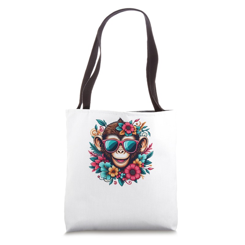 Little Cool Monkey in Sunglasses Surrounded by Flowers Tote Bag
