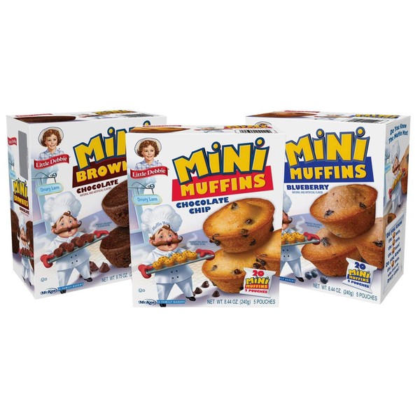 - Includes 1 Box of Little Debbie Mini Brownies, Little Debbie Chocolate Chip Mini Muffins, and Little Debbie Blueberry Mini Muffins