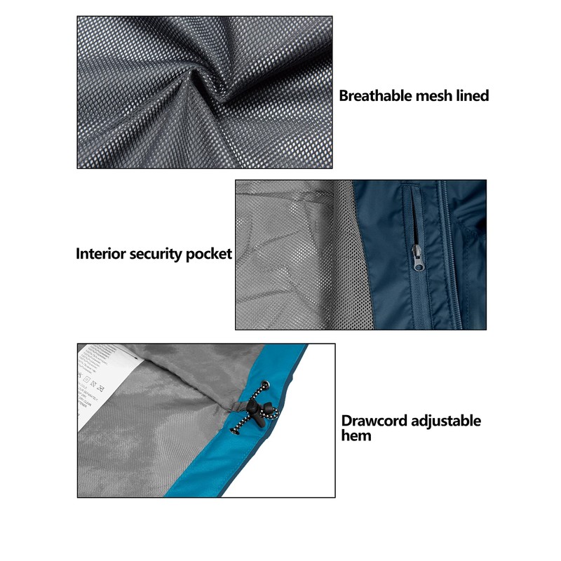 - WATERPROOF & WINDPROOF --- Superior waterproof shell fabric feature with DWR Finish and full seam taped tech, this spring rain jacket performed well in windproof and waterproof, keep you all-day dry in overcast and rainy. Lightweight mesh lining used in core body to wick sweat away from the body.