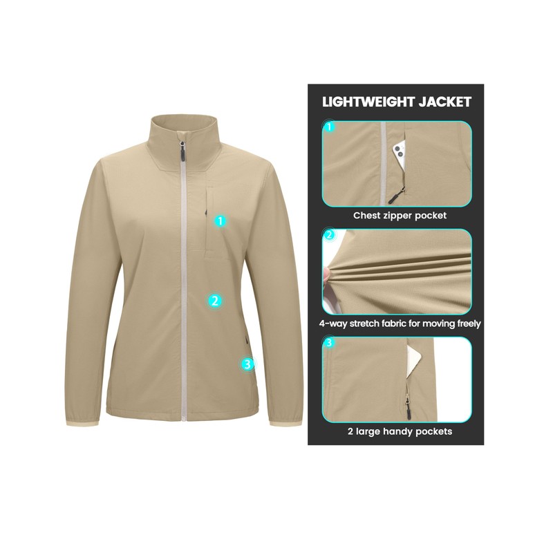 Little Donkey Andy Women's Running Woven Jacket Lightweight Breathable Windproof UPF50+ Shirt for Hiking Golf Khaki S
