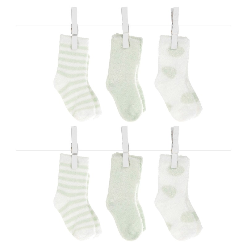 Little Giraffe Box of Socks 6 Pairs Gift Set - Dot/Solid/Stripe 2 Pairs Each (Celadon)