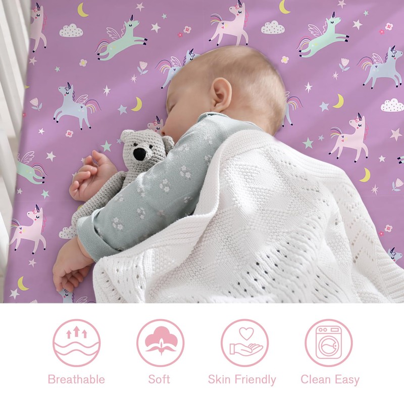 Little Grape Land Crib Sheets 2 Pack for Boys and Girls, Baby Neutral Crib Fitted Sheets for Standard Crib & Toddler Mattress, Super Soft Breathable Fitted Crib Sheet Set, Unicorn