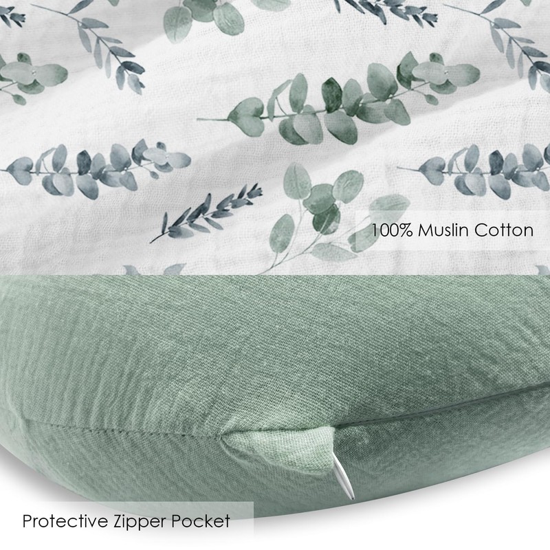 Little Grape Land Muslin Nursing Pillow Cover, 2 Pack Breast Feeding Pillow Cover Fit Standard Nursing Pillows, Soft Removable Covers Slipcovers for Breastfeeding Pillows for Baby(Leaf)