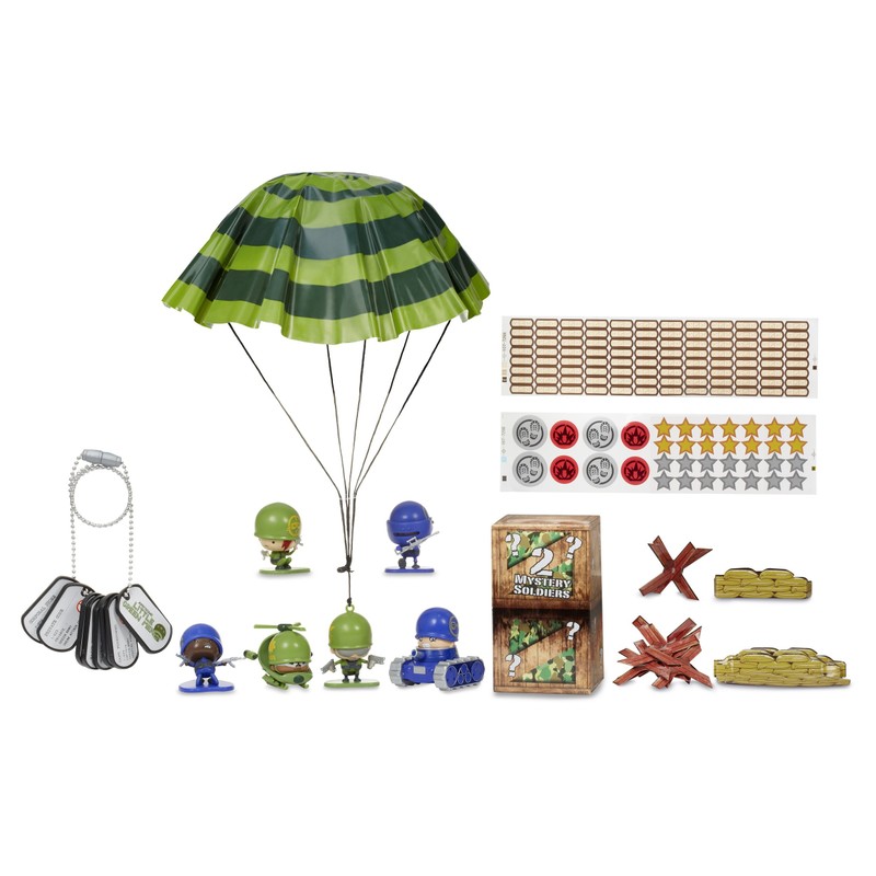 - Comes with eight soldiers from various branches, eight dog tags and chain, new recruit’s poster, game guide and includes two mystery soldiers