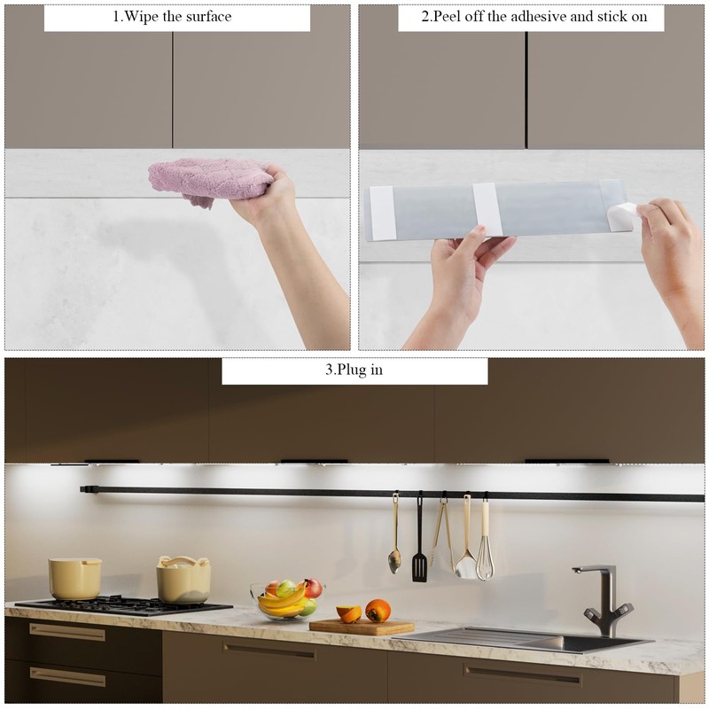 - Simple to install: use tape to stick the cabinet light under the cabinet