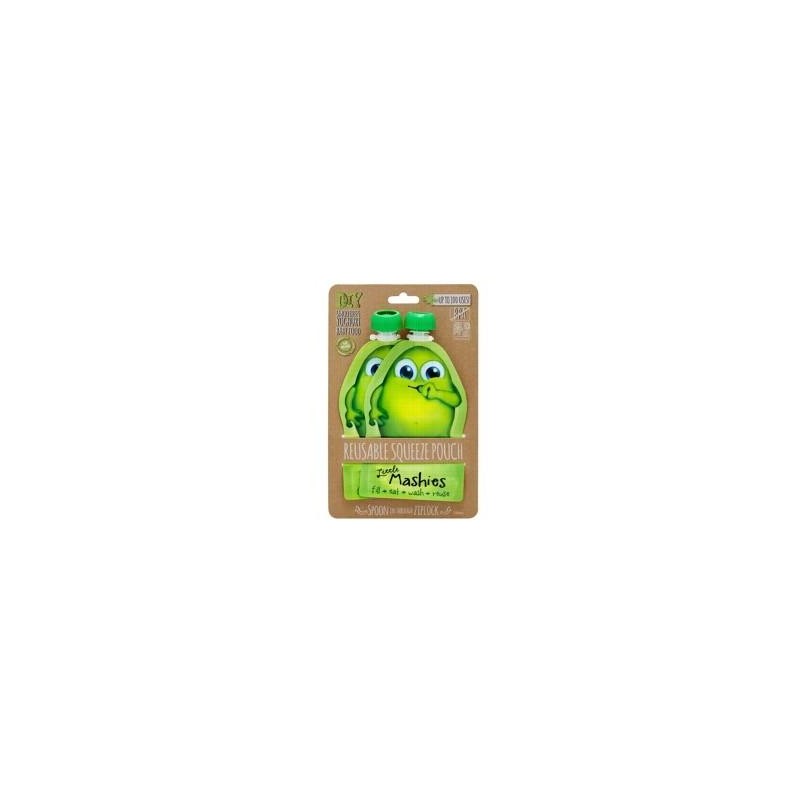 LITTLE MASHIES Reusable Squeeze Pouch Green 130ml 2 pack