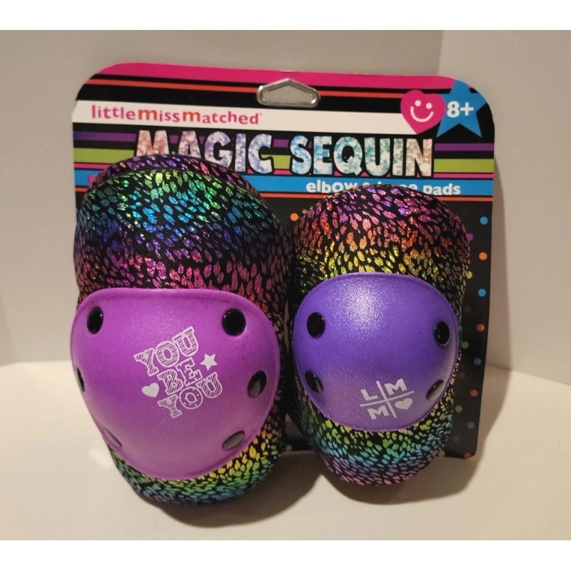little miss MAGIC Sequin Knee & Elbow Pads Set Hardshell Hook Loop Adjustable Straps 8+