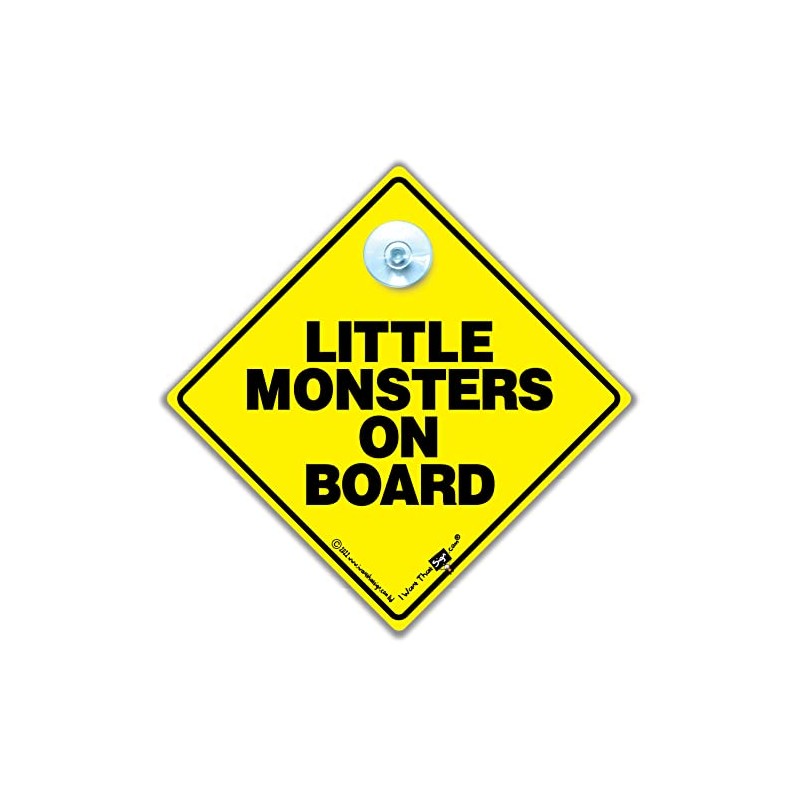Little Monsters On Board Sign, Baby On Board Sign, High Visibility Suction Cup Car Window Sign Designed to Let Other Road Users Baby is in The Car, 14 cm x 14cm x 2cm