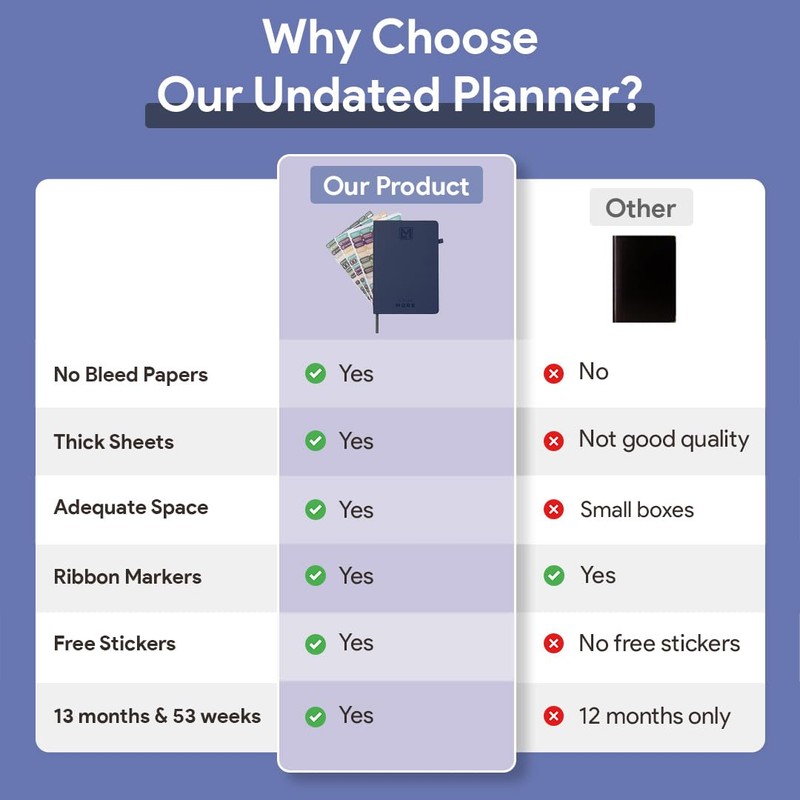 - Undated Planner Weekly and Monthly: Effortlessly plan your 365 days, 53 weeks (1 extra week) & 13 months( 1 extra month) with our dateless planner, designed for peak efficiency. Perfect to use as productivity planner or an ADHD organizer for adults!