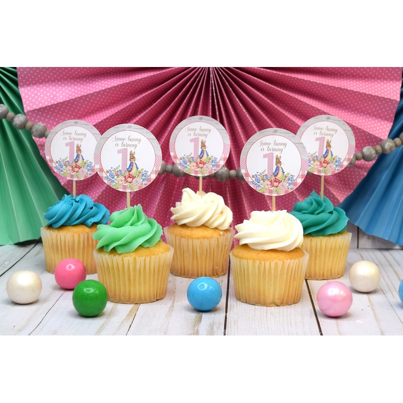 Little Rabbit First Birthday Thank You Sticker Labels for Girls, 40 2" Party Circle Stickers by AmandaCreation, Great for Party Favors, Envelope Seals & Goodie Bags